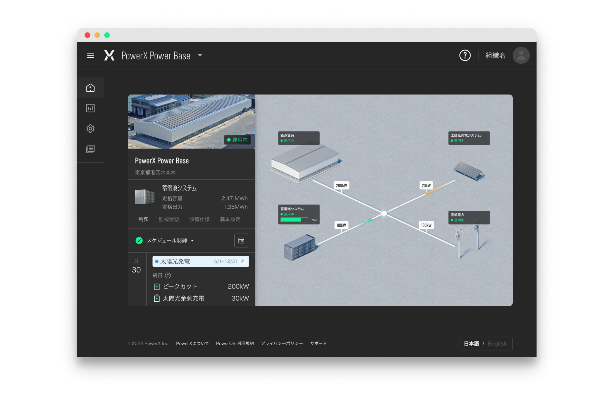 Energy storage for carbon reduction, cost savings, and BCP. Optimizes energy use in factories, warehouses, and buildings, adjusting to changing conditions with software-driven control.