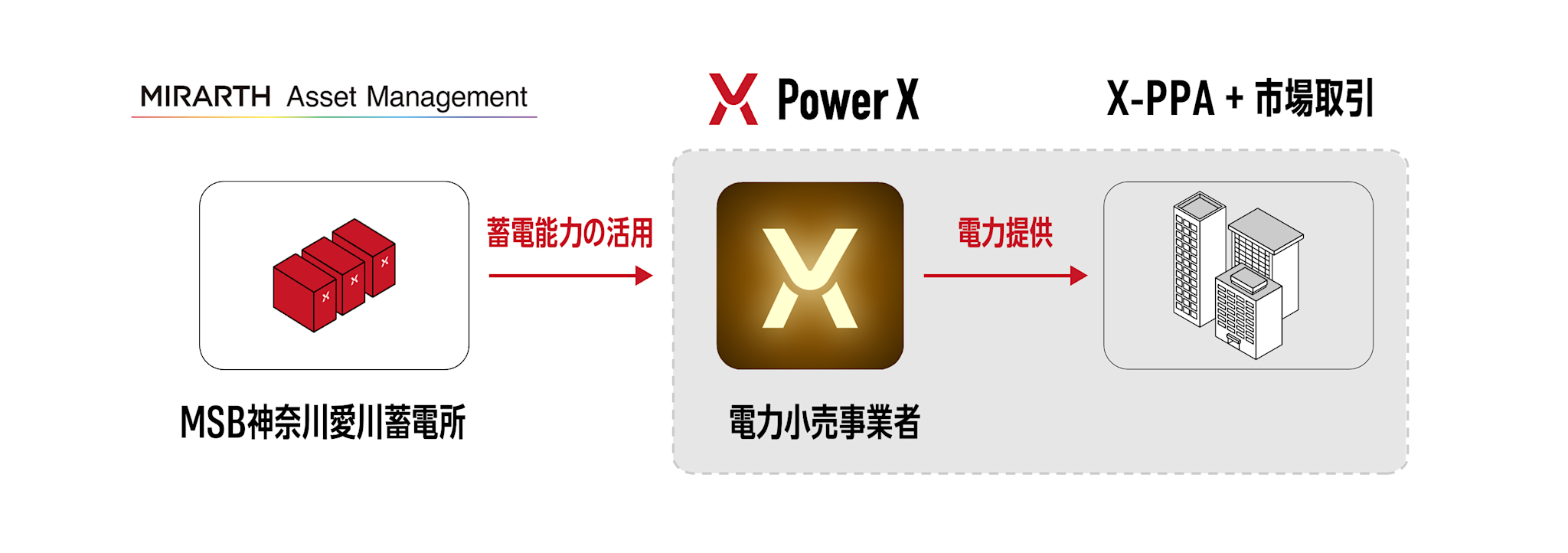 株式会社パワーエックス(本社:東京都港区、取締役 代表執行役社長 CEO:伊藤 正裕、以下「パワーエックス)は、この度、MIRARTHアセットマネジメント株式会社(本社:東京都千代田区、代表取締役社長:髙橋 衛、以下「MAM」)と系統蓄電所ビジネスの事業提携に係る覚書を締結しました。