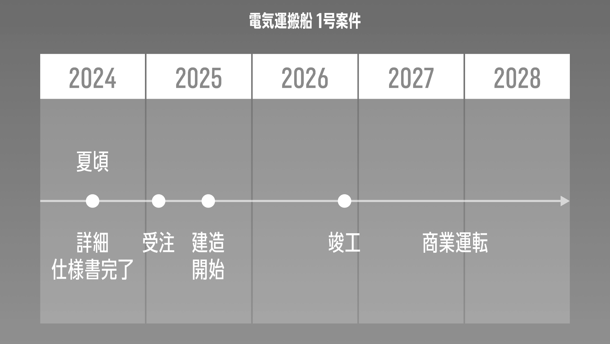 海上パワーグリッドは、Power Ark 100の初号船「X」の完成に向けて、船の詳細仕様書の作成に取り組んでおり、今夏に完了する見込みです。詳細仕様書が完了後、2025年中に建造を開始し、2026年内の竣工を目指しています。